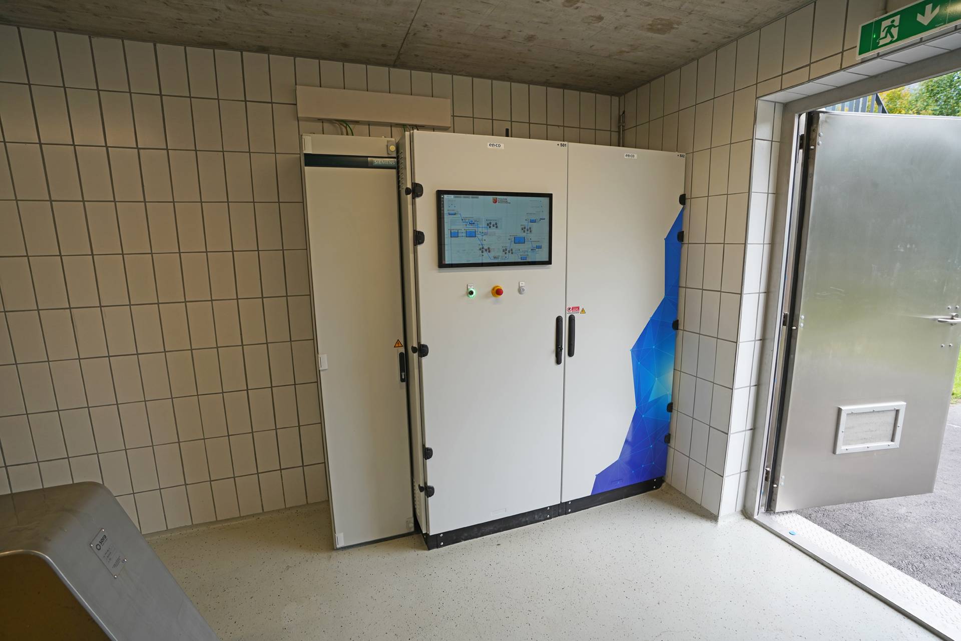Eine zentrale Herausforderung für das Projekt stellte die Steuerung und Adaptierung der Leittechnik dar, da neben dem Betrieb des Trinkwasserkraftwerks auch die Versorgungssicherheit der gesamten Trinkwasserinfrastruktur gewährleistet werden musste. Unter den gegebenen Rahmenbedingungen – insbesondere der wasserrechtlichen Vorgabe, dass die Gemeinde Schönwies nur so viel Wasser entnehmen darf, wie tatsächlich für die Versorgung benötigt wird – musste die Steuerung entsprechend konzipiert werden. Demnach bildet sie jene Direktive ab, wonach die Ableitung vom Pegelstand im Hochbehälter abhängt. „Der Betrieb des Trinkwasserkraftwerks ist somit direkt an den aktuellen Trinkwasserverbrauch in Schönwies gekoppelt. Das überschüssige Wasser wird automatisch dem Unterlieger-Kraftwerk der Stadtwerke Imst zugeführt. Diese spezielle Anforderung erforderte eine maßgeschneiderte Lösung, die von der Firma en-co aus Ratschings mustergültig umgesetzt wurde“, erklärt Alexander Plangger. Hinzu kam eine neue steuerungstechnische Lösung, die nun eine exakte Abstimmung zwischen den beiden Trinkwasserparteien, also den Gemeinden Zams und Schönwies, ermöglicht – und das in Echtzeit.
