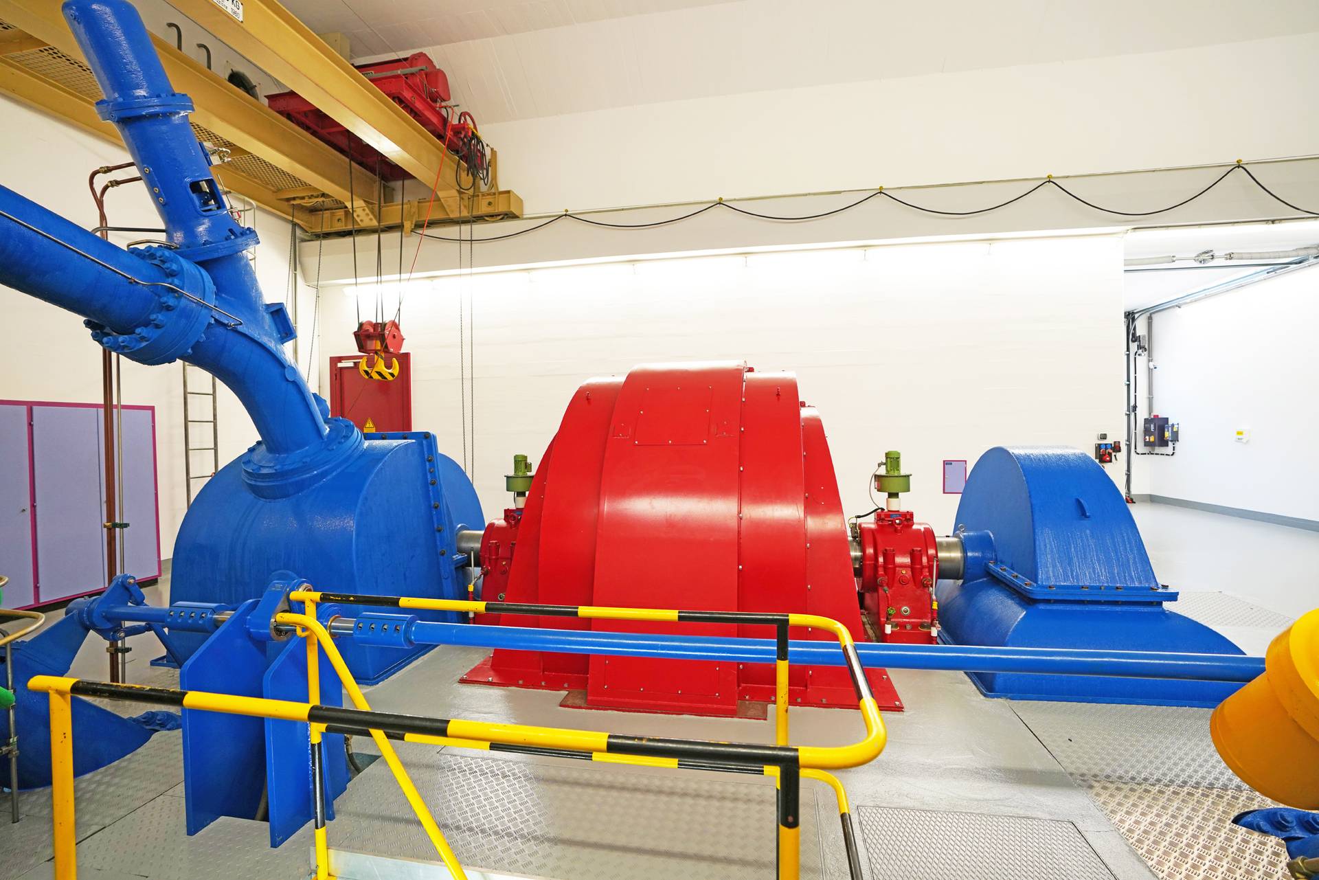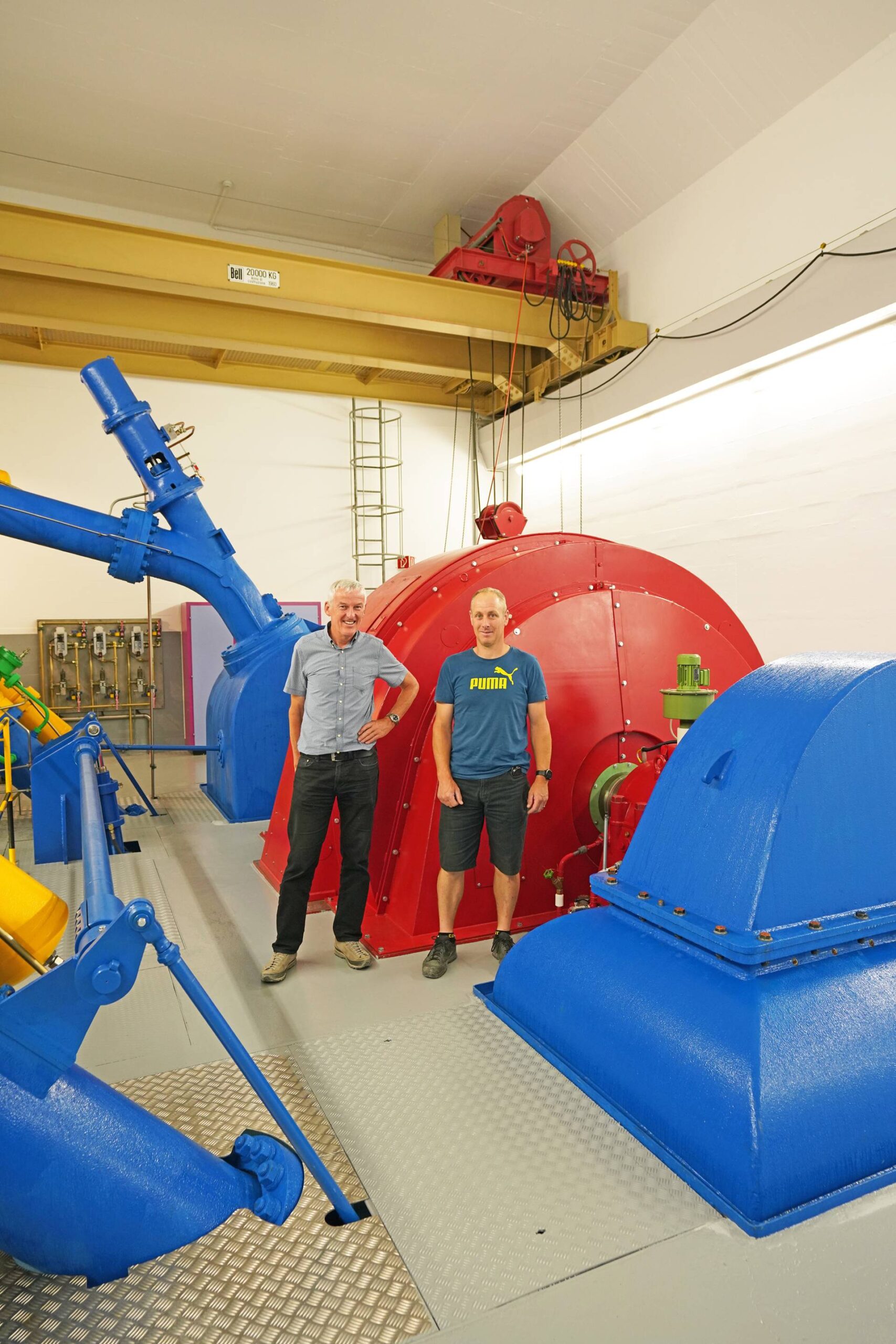 Abseits der komplexen Bauarbeiten im Prä richtete sich der Fokus der Betreiber auch auf das elektromaschinelle Equipment in der Zentrale, das schließlich knapp acht Jahre stillgestanden hatte. „Ein derartig langer Stillstand bedeutet, dass man sich die Maschinen genau ansehen muss. Um etwa Kondensation am Generator zu vermeiden, haben wir dauerhaft für eine Beheizung des Maschinenhauses gesorgt“, erzählt Andres Fasciati und verweist darauf, dass man zur langfristigen Sicherung des Anlagenbetriebs bereits vor dem Stillstand eine Überholung des Generators geplant hatte. „Die Wicklung des bestehenden Generators stammte noch aus dem Jahr 1958, es war Zeit für ein Retrofitprogramm“, sagt Andres Fasciati. Für eine professionelle Sanierung wurde der Generator vollständig ausgebaut, neu gewickelt und mit neuen Polen versehen, während der Rotor-stern erhalten blieb. Anfang Januar 2025 wurde der 20 Tonnen schwere Rotor mit millimetergenauer Präzision wieder in den Stator eingesetzt – nicht nur ein technisches Highlight, sondern auch ein entscheidender Meilenstein des Projekts. Auch die Hauptwelle, auf der die beiden Laufräder und der zentral angeordnete Generator sitzen, wurde aufgrund von Verschleißerscheinungen komplett ersetzt. Nachdem ein Laufrad bereits vor circa zehn Jahren ausgetauscht wurde, folgte nun der Austausch des zweiten.